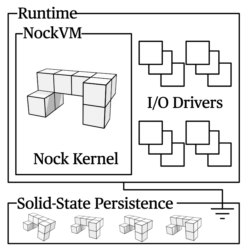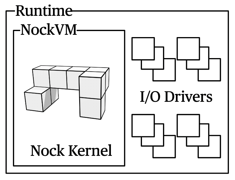 Most developers will encounter NockApp as a two-component architecture, a runtime or virtual machine program which is internally running a Nock ISA program as a kernel.
