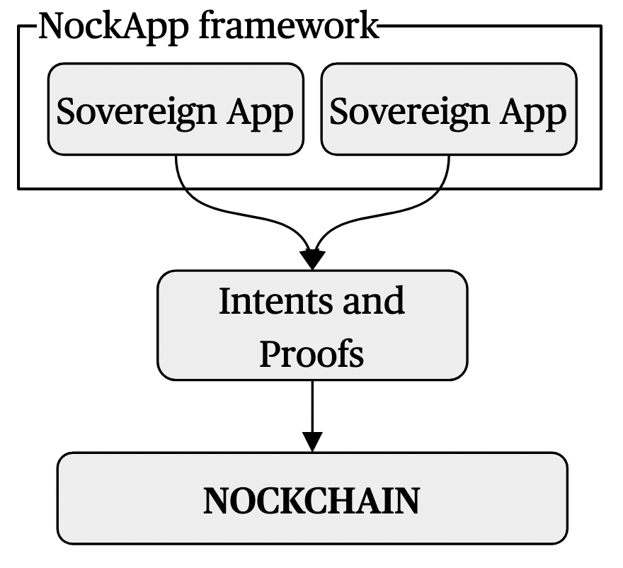 The NockApp framework eliminates this tradeoff. Applications built with NockApp define their own intents while remaining composable through Nockchain's shared proof layer. Applications built using NockApp are sovereign—each application can set its own appropriate rules while inheriting Nockchain's security and proof system. They are permissionless with no pre-approval or gatekeeper to deploy (and Nockchain is built to be censorship-resistant). And they're provable, taking advantage of the mathematical provability of the Nock ISA. With NockApp, developers spend their time building features instead of optimizing for on-chain gas costs. Sovereign applications compose trustlessly for a superior user and developer experience.