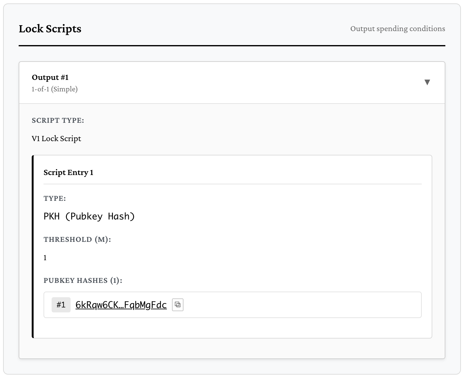 pkh, verify m-of-n multisigs using batch verification (including 1-of-1).tim, check timelock as block height constraint (relative or absolute).hax, check hashlock, i.e. verify the preimage hashes to the claimed value.brn, burn (always fails, provably unspendable).